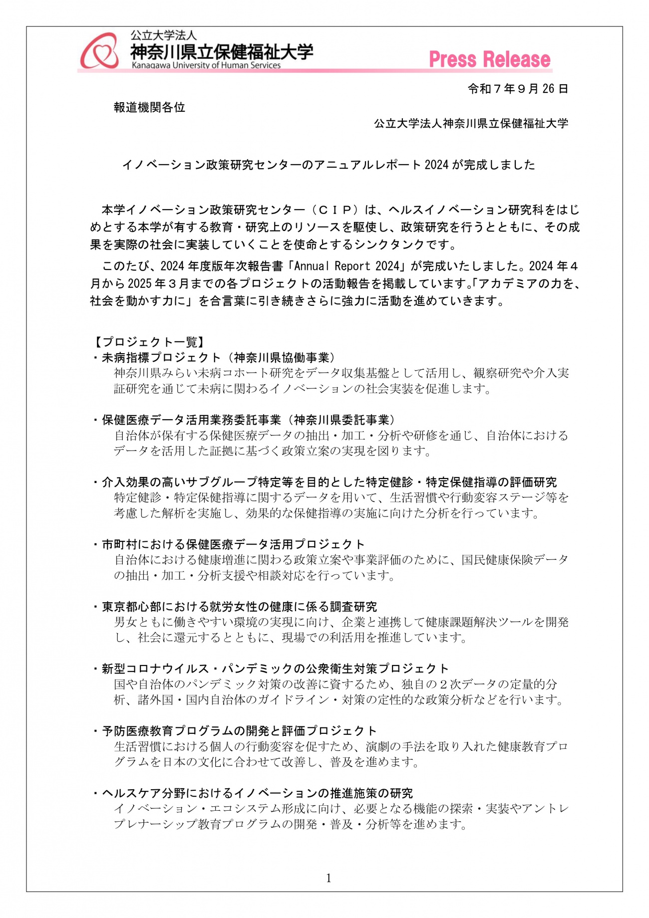 イノベーション政策研究センターのアニュアルレポート2024が完成しました