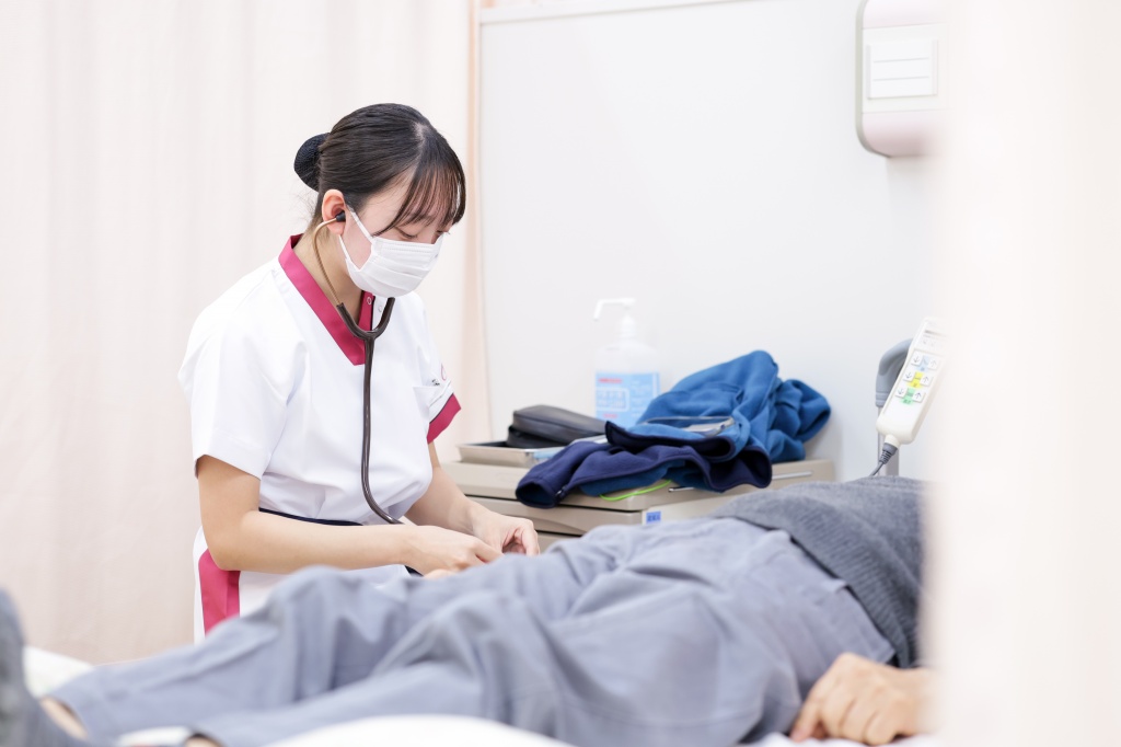 本演習では、地域で生活する高齢者の方を中心とした住民の皆さまと、学生が対話を通して生活や健康についてお伺いし、あわせて血圧・体温測定などの看護技術を行いました。学生は複数回のかかわりと振り返りを通して、自身のコミュニケーションの強み・課題に気づき、今後の実習に向けた準備性を高めていました。
