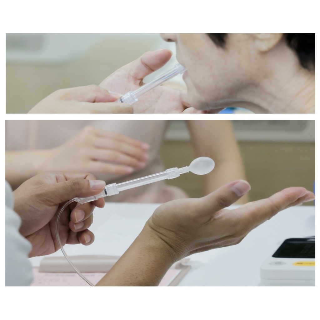 舌圧測定器を使って、親指サイズのバルーンを舌で押して測定します🎈
