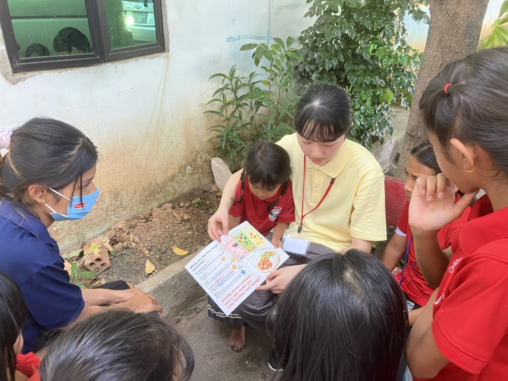 One-2-One Cambodia is a non-governmental organization (NGO) run by Cambodians and handles various projects including healthcare and education. In this field study, we participated in “Feeding Program”, one of their projects, and cooked and then served lunch to children at slum. This time, we came up with the menu and created a leaflet on nutrition education. In the afternoon session, we participated in an activity at community clinic and supported treatments by a local doctor.